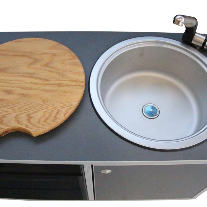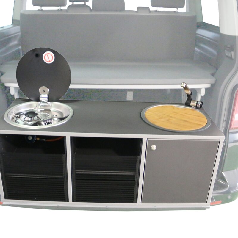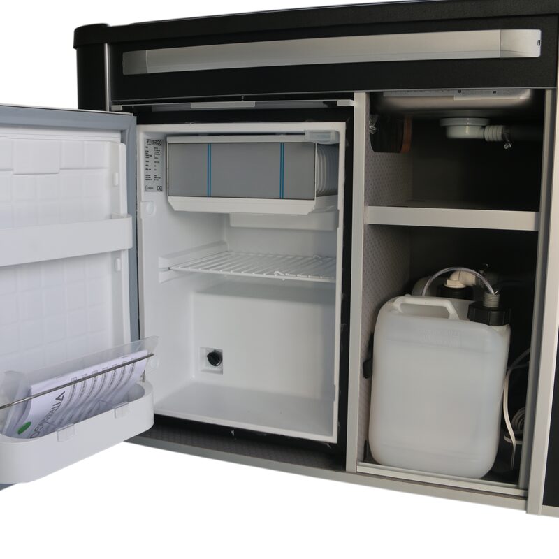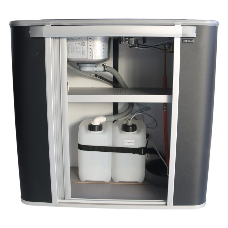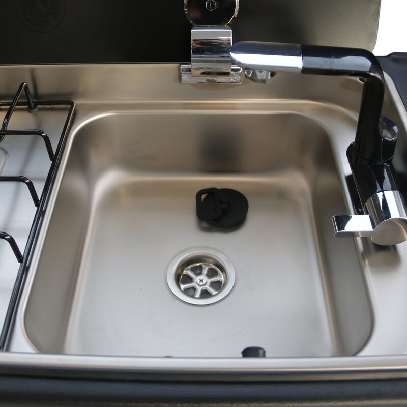 Mit separaten Abdeckungen aus temperaturbeständigem Sicherheitsglas und Bohrung für Wasserhahn (ø 33 mm) Mit Sicherheitszündsystem und elektronischer Zündung (Anschlussspannung 12 Volt wird benötigt).