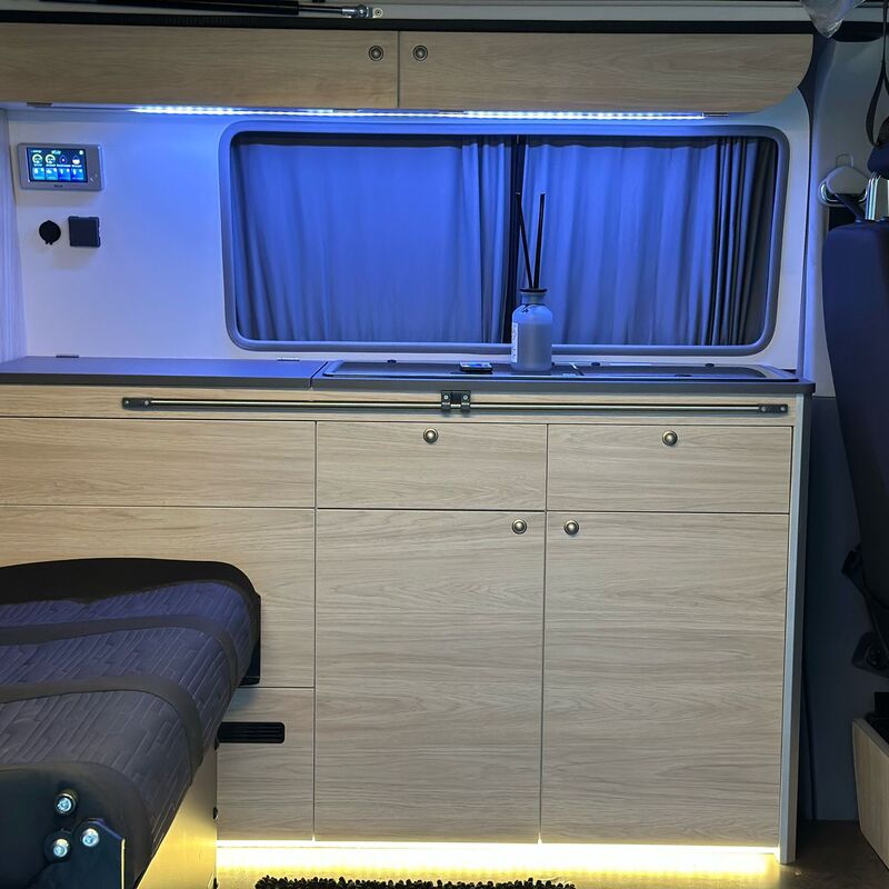 Die Fahrzeugverglasung ist ein wichtiges Thema beim Camperausbau. Dafür bieten wir Dir ausschließlich hochwertige und passgenaue Fenster aus Sicherheitsglas mit Prüfzeichen an. Die Tönung beträgt ungefähr 80%.